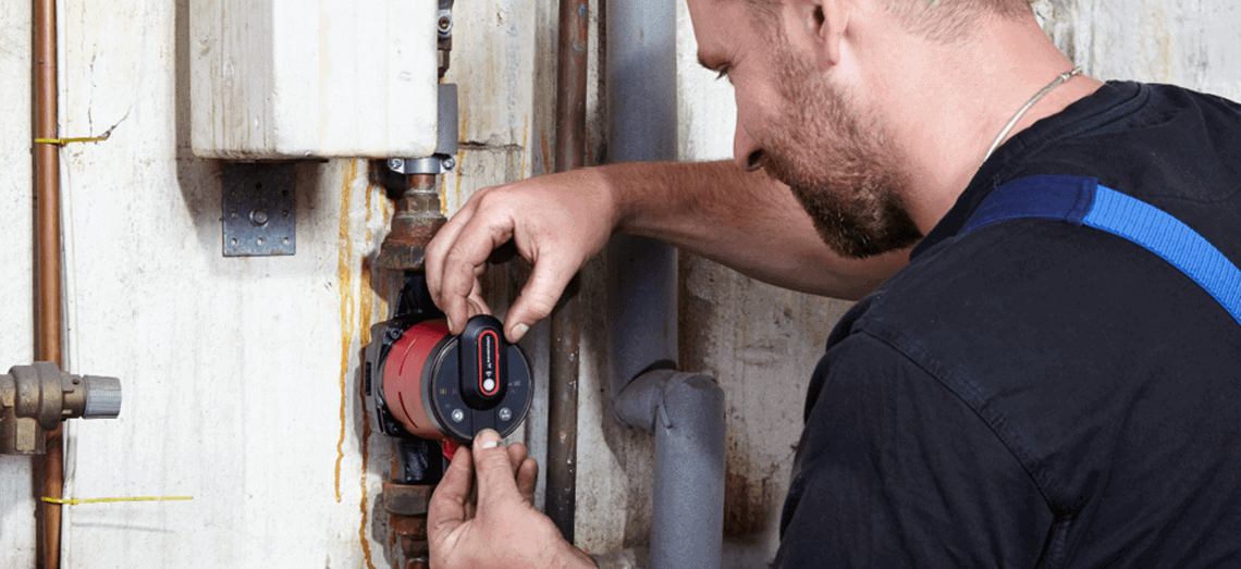 Grundfos-cirkulationspumper til varme og varmt vand i hanen
