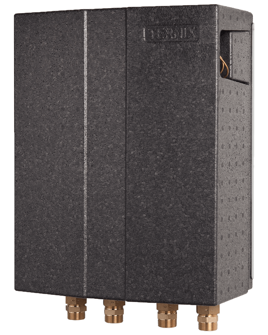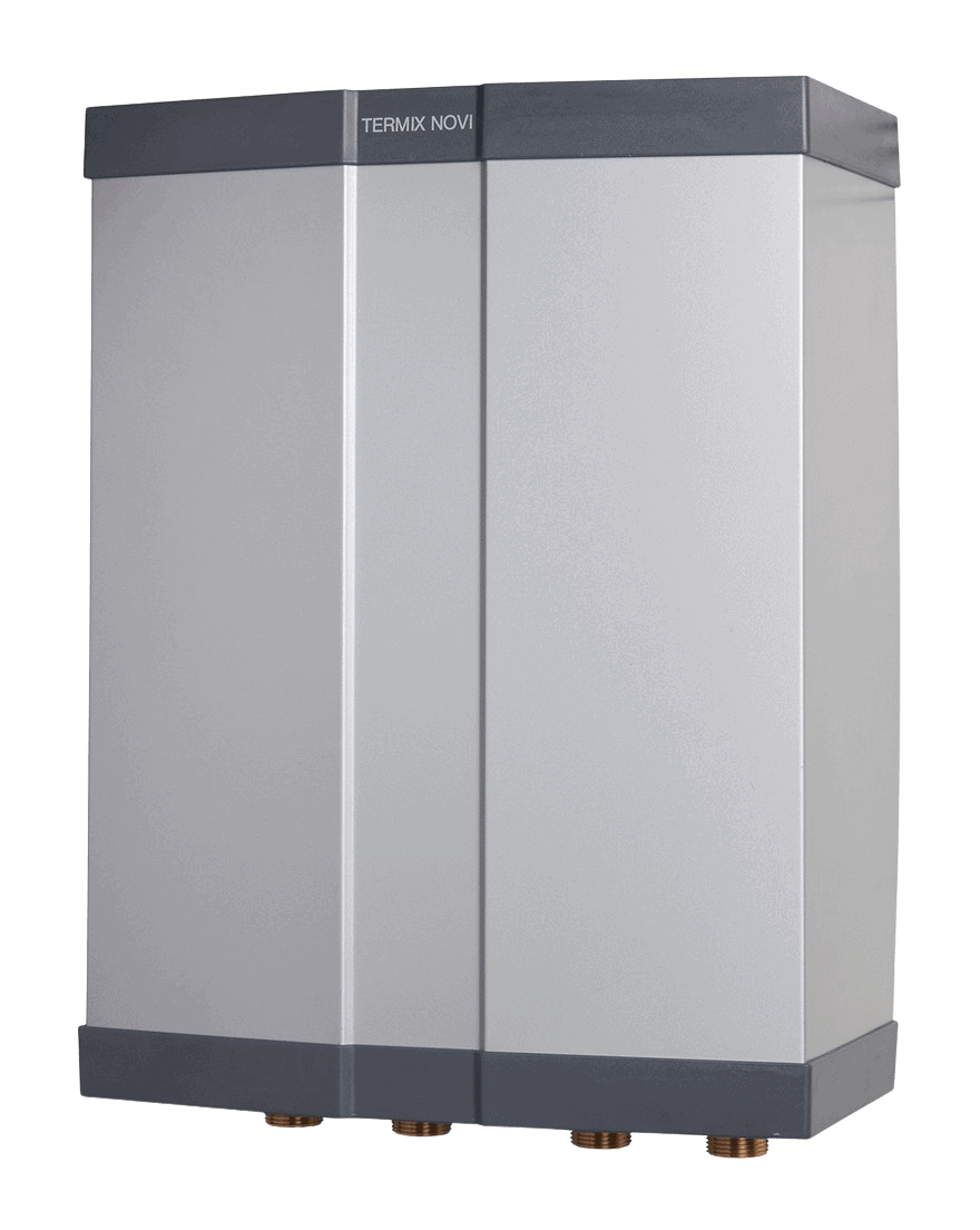 Termix Novi er en effektiv vandvarmer med flere energibesparende egenskaber. Den intelligente Termix TPV-regulator sørger for, at vandvarmeren altid er klar til at producere varmt brugsvand. Derved undgås unødvendigt energiforbrug. Vandvarmeren leveres med energibesparende T16H+ pladeveksler, der skaber optimal afkøling på primærsiden. Fuldisoleringen sikrer minimalt varmetab både under tapning og i tomgangsfunktion.
